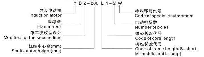 YB2系列隔爆型三相異步電動機(機座號:63-315,極數(shù):2-8極,功率:0.12kW-200kW)