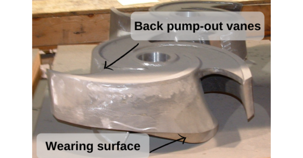 然而,隨著葉輪向吸入耐磨板的方向調(diào)整,葉輪后面的間隙會(huì)增加。大多數(shù)開(kāi)式葉輪在非泵送側(cè)都有小葉片,稱為“背抽葉片”。這些葉片就像另一個(gè)離心泵一樣,其目的是保持填料函的低壓。如果沒(méi)有這些葉片,填料函壓力將接近泵的排放壓力,這可能導(dǎo)致填料污染和填料壽命降低。