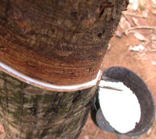 世界上約有2000種不同的植物可生產(chǎn)類似天然橡膠的聚合物,已從其中500種中得到了不同種類的橡膠,但真正有實(shí)用價值的是巴西三葉橡膠樹。橡膠樹的表面被割開時,樹皮內(nèi)的乳管被割斷,膠乳從樹上流出。從橡膠樹上采集的乳膠,經(jīng)過稀釋后加酸凝固、洗滌,然后壓片、干燥、打包,即制得市售的天然橡膠。天然橡膠根據(jù)不同的制膠方法可制成煙片、風(fēng)干膠片、縐片、技術(shù)分級干膠和濃縮膠乳等。