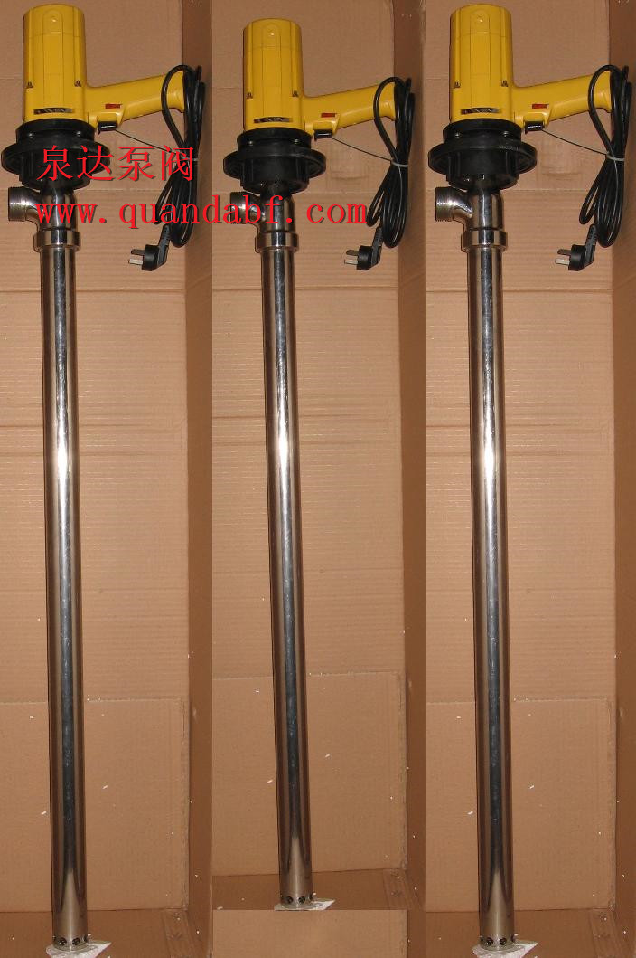 SB型電動(dòng)油桶泵是泉達(dá)公司引進(jìn)西德優(yōu)質(zhì)樣機(jī)開(kāi)發(fā)研制而成,各項(xiàng)技術(shù)指標(biāo)均能達(dá)到樣機(jī)水平,并在樣機(jī)基礎(chǔ)上開(kāi)發(fā)了不同的使用場(chǎng)合不同抽吸液體的系列派生產(chǎn)品,該系列抽液泵為輕便型管式軸流泵,具有效率高,使用、維修方便等特點(diǎn)。SB型油泵廣泛用于化工、石油化工、精細(xì)化工、染料化工、環(huán)保、水處理、醫(yī)藥、食品等部門(mén)抽吸不同液體。如在易燃易爆場(chǎng)合使用,可選用我公司生產(chǎn)的防爆型電動(dòng)抽液泵。(SB-3型、SB-4型)使用油泵時(shí)應(yīng)按CB38361-2《爆炸環(huán)境用防爆電氣設(shè)備》有關(guān)規(guī)定并正確使用防爆插頭插座。