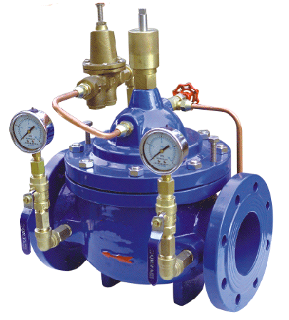 400X流量控制閥由主閥、流量調(diào)節(jié)閥、針閥、導(dǎo)閥、球閥、微形過濾器和壓力表組成水力控制接管系統(tǒng)。利用水力自動(dòng)操作,控制和調(diào)節(jié)主閥開度,使通過主閥的流量保持不變。