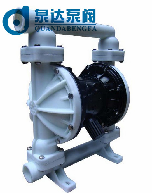 氣動工程塑料隔膜泵是永嘉縣泉達泵閥制造有限公司生產的一種新型輸送機械,工程塑料隔膜泵主要用于輸送偏酸性的液體及用戶要求泵整機重量偏輕的工況,重量輕便于移動。氣動隔膜泵已被國內一千多家石油、化工、電子、陶紡織系統(tǒng)單位采用,安置在種特殊場合,用來抽送各種常規(guī)泵不能抽吸的介質,均取的了滿意的效果。 泉達生產的工程塑料氣動隔膜泵也稱聚丙烯氣動隔膜泵是目前國內最新穎的一種泵類。我們公司設計的該款泵是采用壓縮空氣為動力源,對于各種腐蝕性液體,帶顆粒的液體,高粘度、易揮發(fā)、易燃、劇毒的液體,均能予以抽光吸盡。其性能參數(shù)與聯(lián)邦德國的 WLLDENPVMPS、美國的MARIOWPUMPS相近.本廠目前已形成系列化生產,共有八種規(guī)格直徑:¢10mm3/8"、¢15mm1/2"、¢25mm1"、¢40mm11/2"、¢50mm2"、¢65mm21/2"、¢80mm3"、¢100mm4"。四種材質、鋁合金、鑄鐵、不銹鋼、工程塑料隔膜泵。塑料隔膜泵根據(jù)不同液體介質分別采用丁晴橡膠、氯丁橡膠、氟橡膠、聚四氟乙烯。以滿足不同用戶的需要。